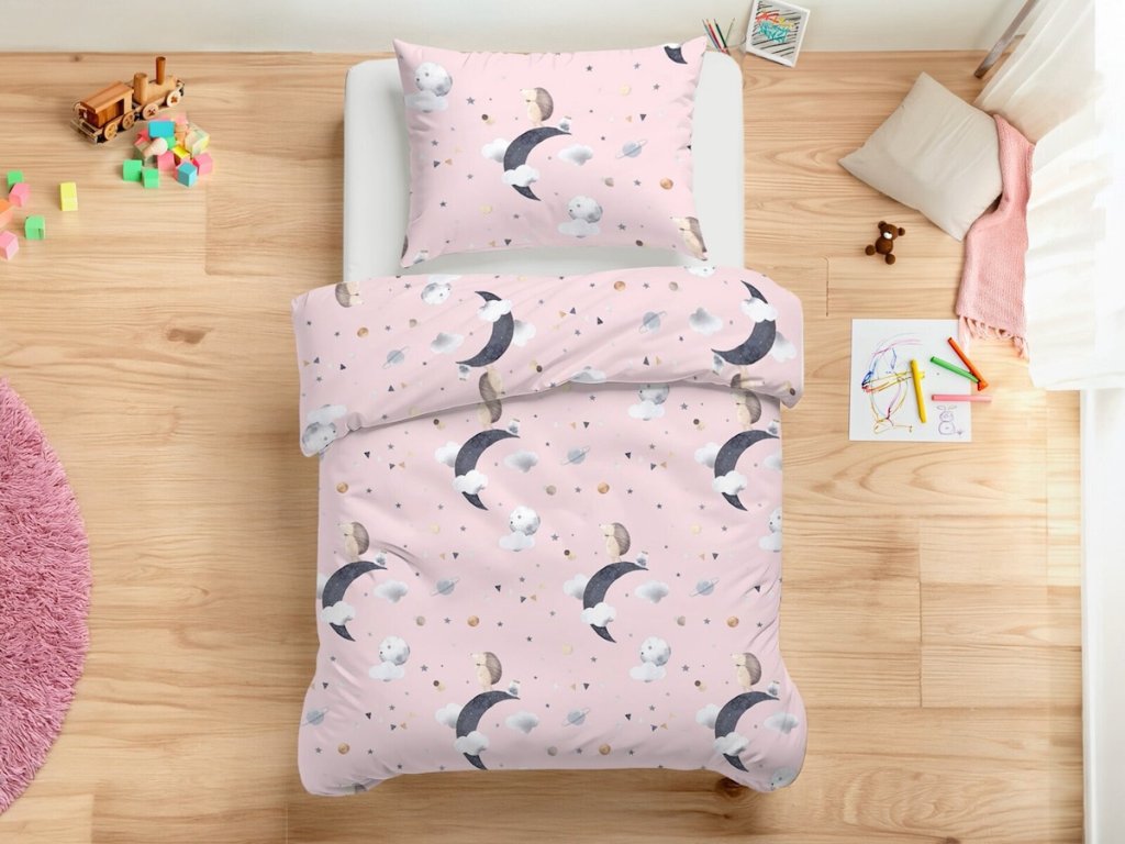 Roztomilé detské obliečky so spiacimi ježkami na mesiaci a ružovom podklade vytvoria v izbe vášho dievčatka rozprávkovo nežnú atmosféru a postarajú sa o pokojný spánok. Roztomilý dizajn poteší malých spachtoškov aj rodičov.