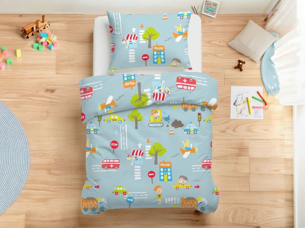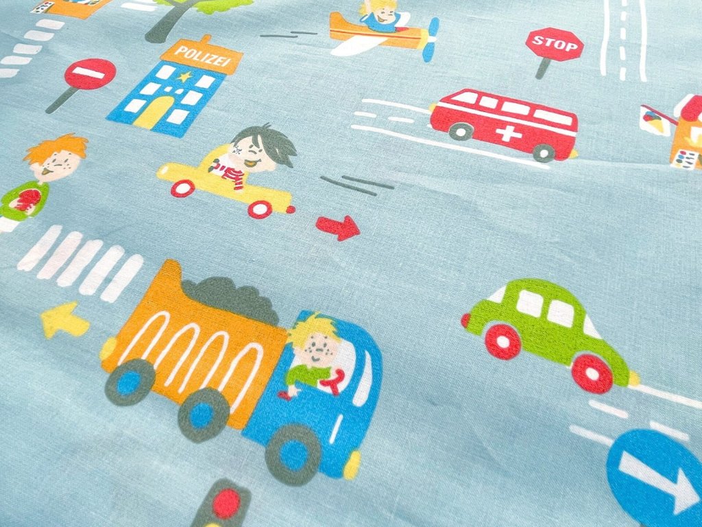 Rozprávkové detské obliečky s pestrou potlačou farebných križovatiek, autíčok, bagrov a sanitiek vytvárajú veselý a hravý dizajn, ktorý rozžiari každú detskú izbu. Malí fanúšikovia dopravy si ich okamžite zamilujú a posteľ sa pre nich stane miestom plným fantázie a dobrodružstva.