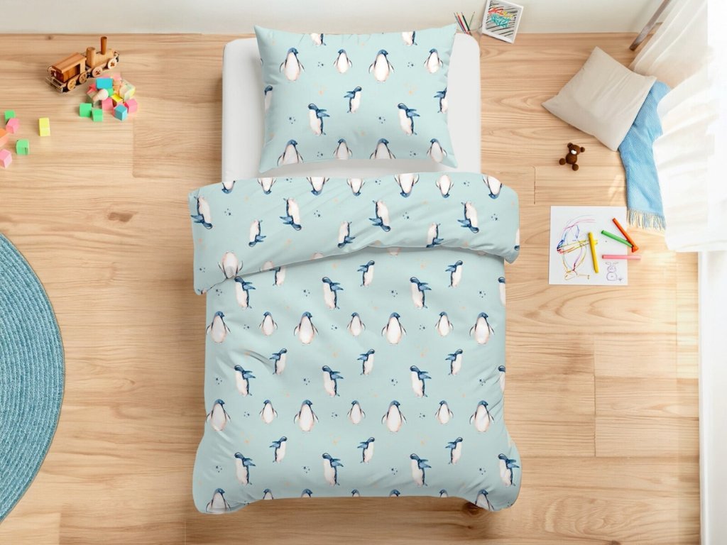 Motív tučniačikov je vytvorený kvalitnou digitálnou potlačou s reaktívnymi farbivami, ktoré sú pevne prichytené k vláknam bavlny. Farby preto zostanú krásne živé a sýte aj po opakovanom praní. Pre zachovanie sýtych tónov odporúčame prať obliečky pri maximálnej teplote 60 °C.