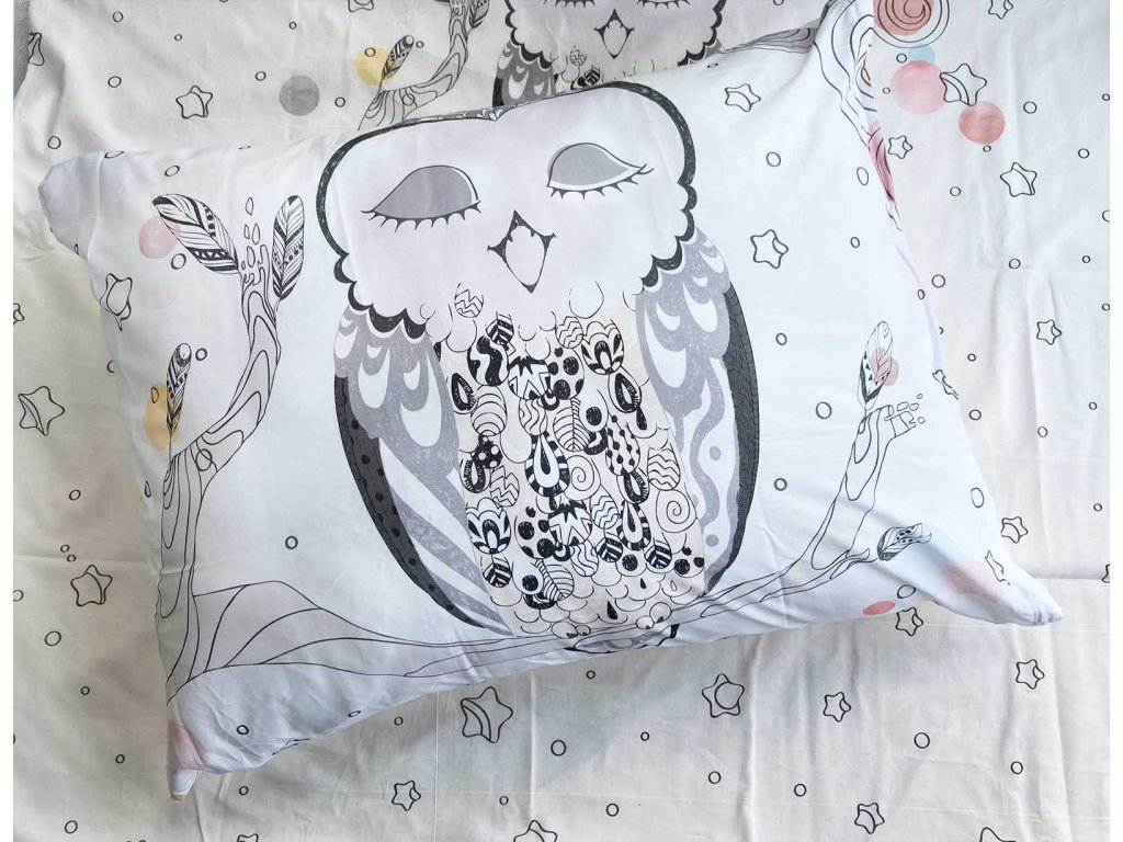 Hravý motív sovy je vytvorený kvalitnou digitálnou potlačou s reaktívnymi farbivami. Vďaka tomu sú farby krásne sýte, detailne spracované a vydržia aj opakované prania bez vyblednutia. Zadná strana obliečok je v jemnej žltej farbe, čo prináša príjemné spestrenie.