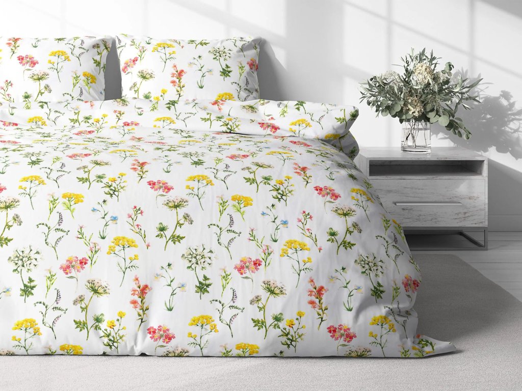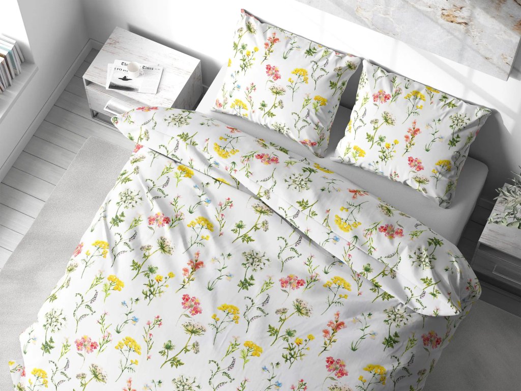 Vneste do svojej spálne sviežu atmosféru leta s bavlnenými obliečkami LETNÁ LÚKA. Jemný motív lúčnych kvetov na bielom podklade dodáva obliečkam šarm a prinesie do interiéru príjemnú a pohodovú náladu.