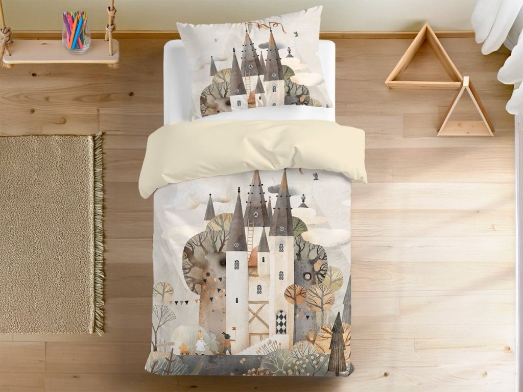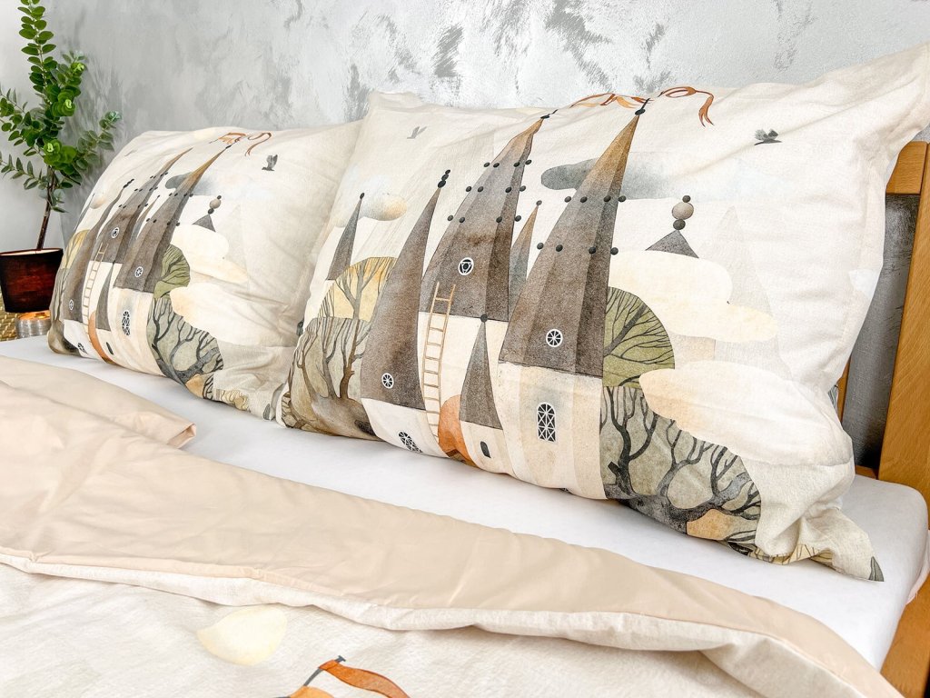 Vneste do svojej spálne kúsok rozprávky s bavlnenými obliečkami Rozprávkový hrad. Nádherný motív Oravského hradu, zachytený detailnou digitálnou potlačou, vytvorí vo vašej izbe jedinečnú atmosféru a premení ju na čarovné miesto odpočinku. Kreslené spracovanie s dôrazom na najmenšie detaily si vás okamžite získa a stane sa dominantou každej detskej izby.