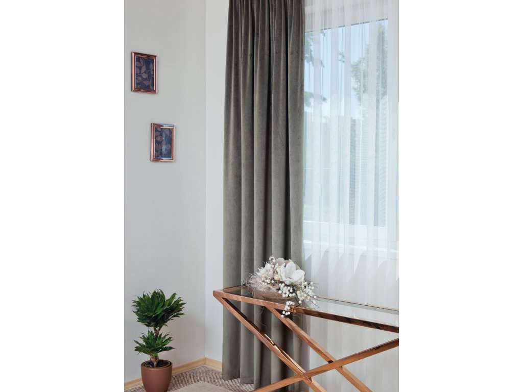 - Uchytenie: našitá ceruzková riasiaca páska 1:2 s pútkami – možnosť zavesenia na háčik, štipec alebo priamo na tyč