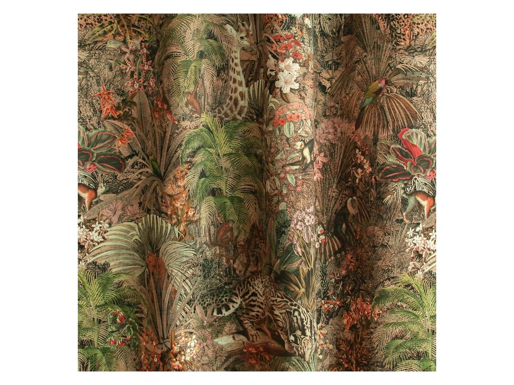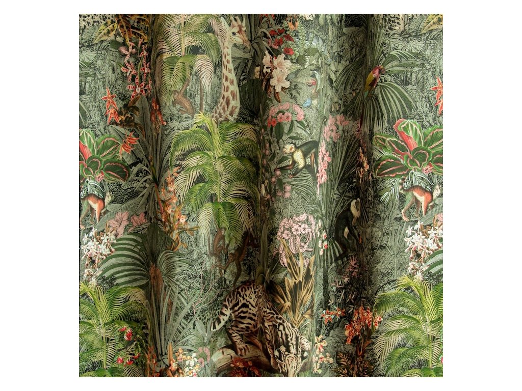 Záves FOREST prináša do interiéru poriadnu dávku originality a štýlu. Extravagantný vzor džungle s kombináciou florálnych a zvieracích motívov oživí aj ten najjednoduchší priestor a premení ho na dizajnový kútik s charakterom.