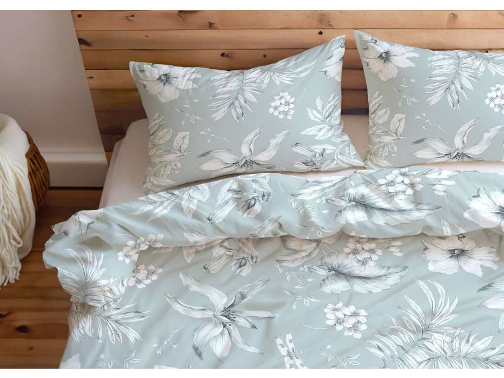 Doprajte si spánok plný romantiky a hrejivého pohodlia s flanelovými obliečkami JESENÍK. Jemná potlač rozkvitnutých kvetín a listov v mentolovo-zelenej farbe pôsobí elegantne a vytvorí vo vašej spálni pokojnú a harmonickú atmosféru. Hebučký flanelový povrch zo 100 % bavlny vás navyše príjemne zahreje počas chladných zimných nocí.