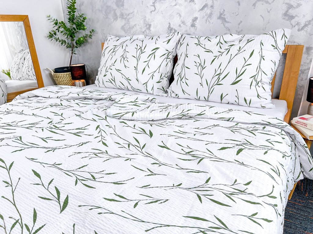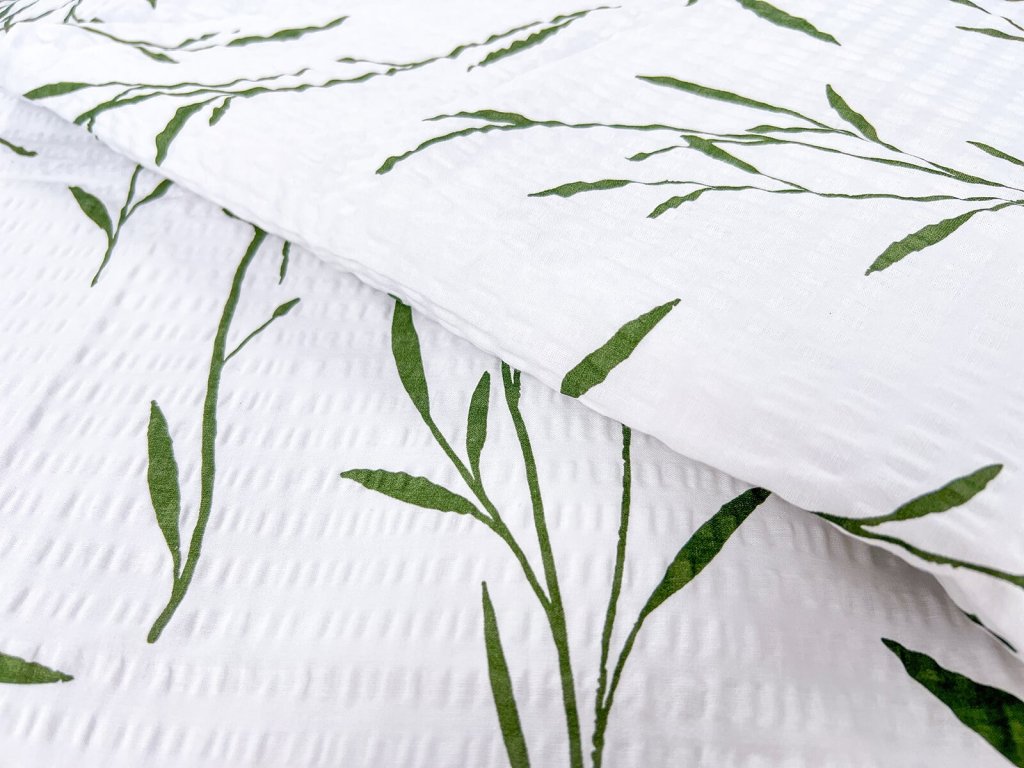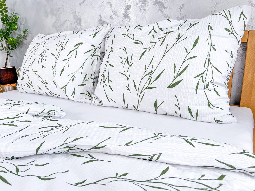 Vneste do svojej spálne sviežosť prírody s krepovými obliečkami MANILA. Elegantná potlač zelených listov pôsobí upokojujúco a dodá interiéru prirodzený, harmonický vzhľad.