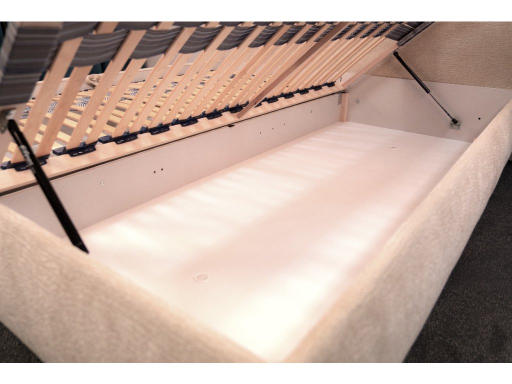 - Integrovaný úložný priestor je ideálny na uskladnenie posteľnej bielizne, prikrývok či sezónneho oblečenia.