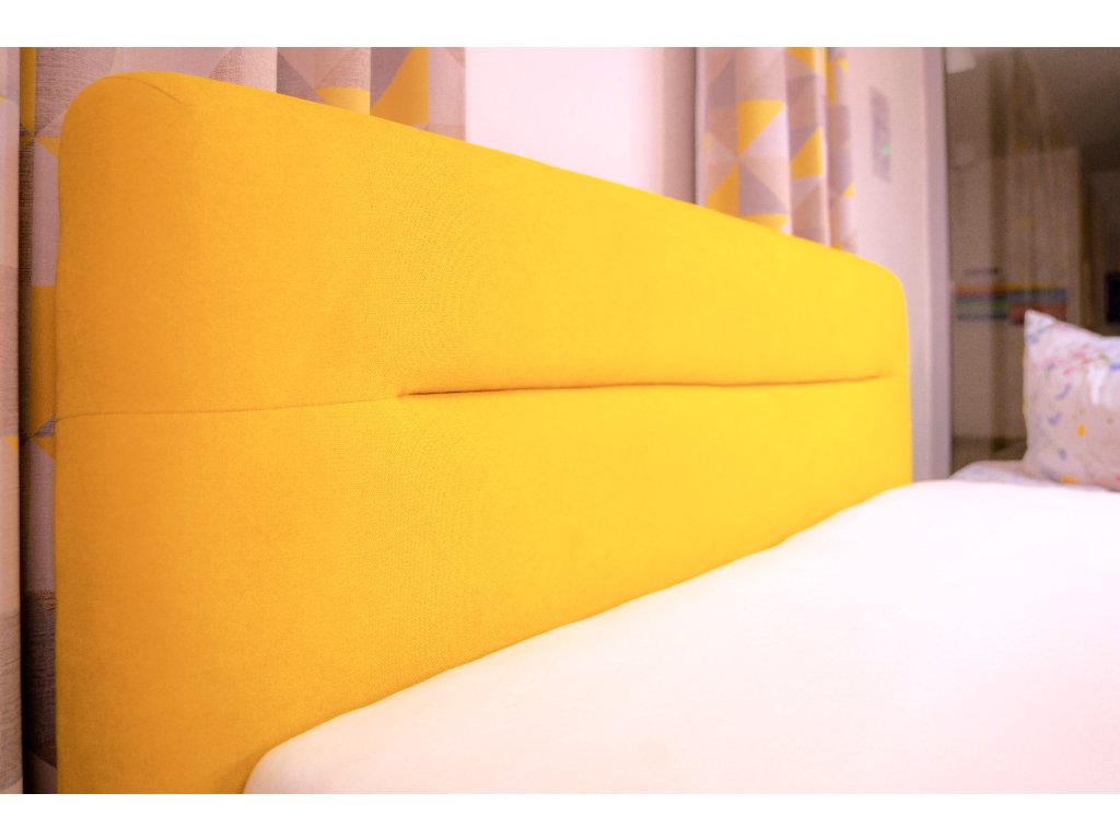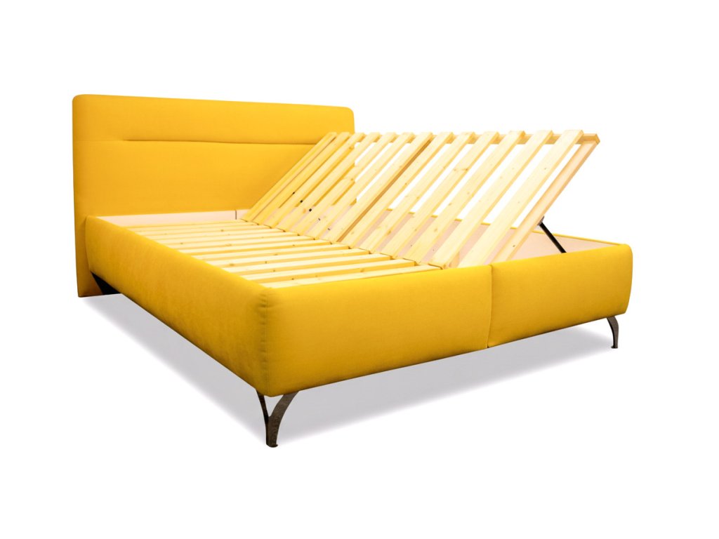- Posteľ stojí na 15 cm vysokých kovových nožičkách, ktoré jej dodávajú ľahkosť a vzdušnosť – spálňa tak nepôsobí ťažko ani pri väčšej posteli.