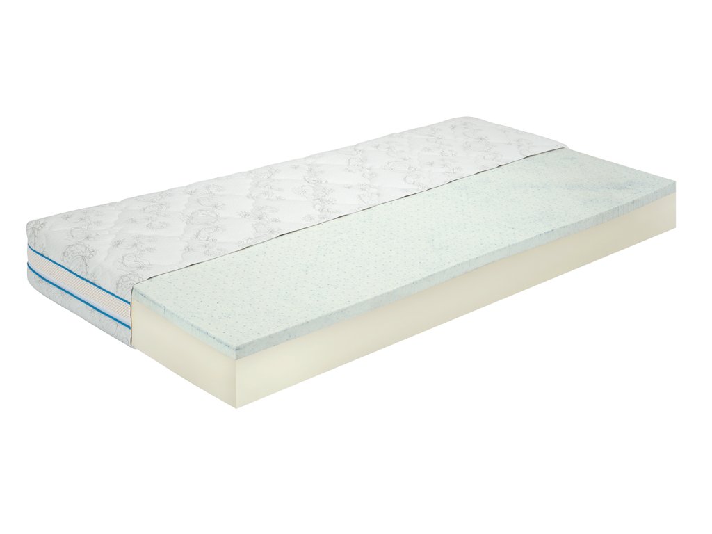 Vrchná vrstva z latexu s prímesou gélových častíc poskytuje nielen optimálnu oporu, ale aj príjemný chladivý efekt, ktorý oceníte najmä počas teplých letných nocí. Táto vrstva sa vďaka svojej vysokej elasticite dokonale prispôsobí krivkám vášho tela a uvoľní svalové napätie. Spodná vrstva z latexovej peny podporuje túto funkciu a zabezpečuje dlhú životnosť matraca.