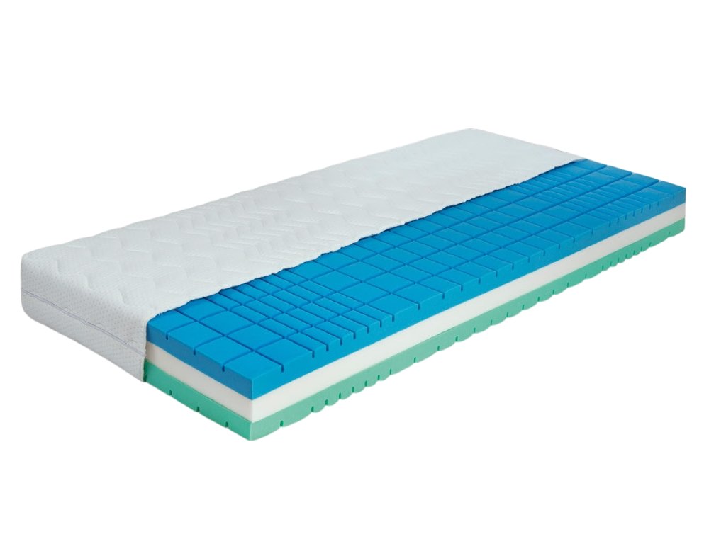 Matrac je obojstranne tvarovaný do antidekubitných zón, ktoré podporujú prirodzenú cirkuláciu vzduchu a pomáhajú predchádzať vzniku preležanín. Toto tvarovanie zároveň napomáha lepšiemu rozloženiu tlaku na telo, čím znižuje napätie v ramenách, bedrách či kolenách. Sedem anatomických zón matraca je špeciálne navrhnutých tak, aby poskytovali cielenú oporu jednotlivým častiam tela – od hlavy a ramien, cez driek a panvu, až po nohy. Tým je zabezpečená správna poloha chrbtice počas celej noci, čo má pozitívny vplyv na regeneráciu svalov a celkový komfort spánku.