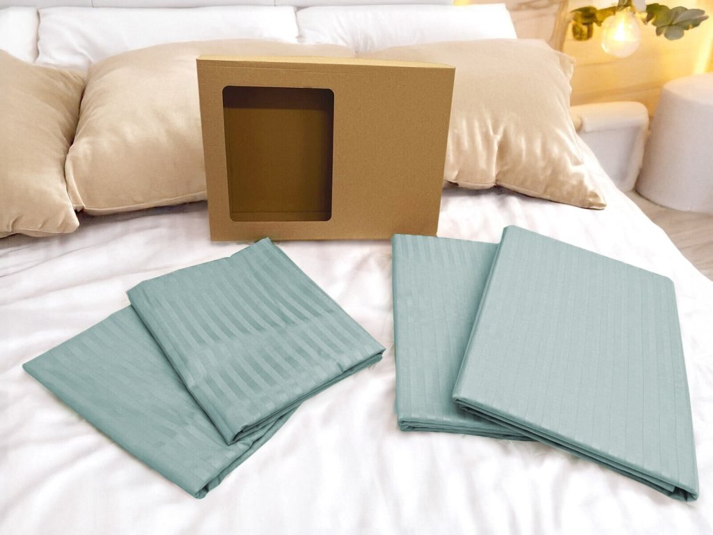 Doprajte si pokojný spánok s damaškovými obliečkami v elegantnej svetlozelenej farbe. Jemný vytkávaný prúžkovaný vzor so šírkou 10 mm vytvára na povrchu tkaniny sofistikovanú hru svetla a lesku, vďaka čomu pôsobia obliečky luxusne a nadčasovo.