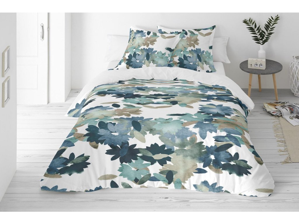 Doprajte si pohodlie a sviežosť s perkálovými obliečkami Ravena. Prednú stranu zdobí výrazná potlač veľkých akvarelových kvetov v modro-zelených odtieňoch na svetlom podklade, zatiaľ čo zadná strana je hladký, snehobiely perkál, ktorý zaručí dokonalý spánok pod prirodzenou bavlnou. Kombinácia tyrkyskových farieb vnesie do spálne pokoj a harmóniu.