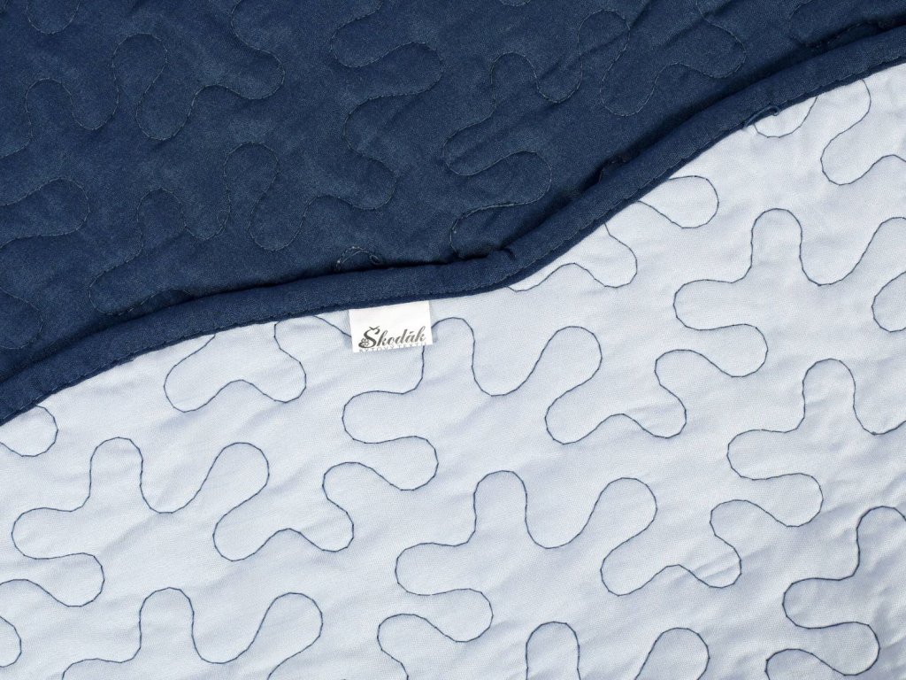 Dodajte svojej spálni elegantný a moderný vzhľad s prehozom Bella. Horná strana je vyhotovená v štýlovej tmavomodrej farbe, zatiaľ čo spodná strana má jemný belasý odtieň, čo dodáva prehozu sviežosť a univerzálnosť pri ladení interiéru.